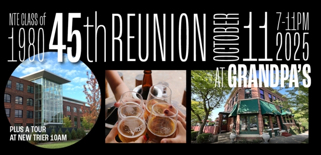 Thank you to everyone who came to our 45th Reunion!!! It was wonderful to see everyone, and we hope you all had a great time! Photos of the reunion are here if you want to reminisce about the great time we had!